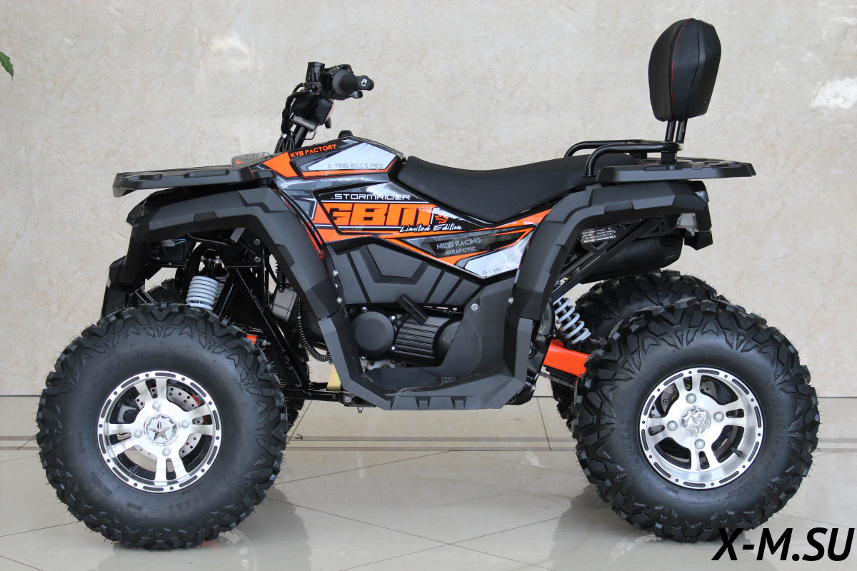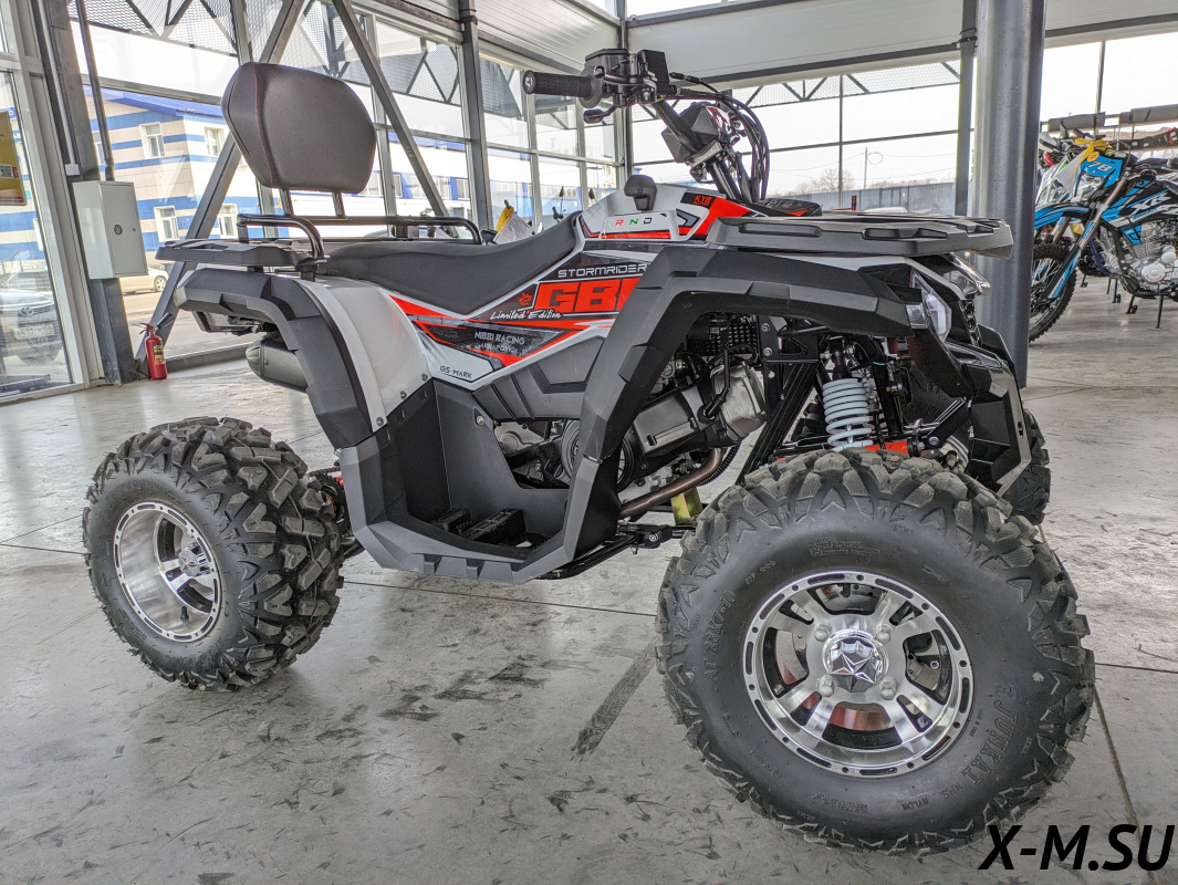 Вот он, мой красавец! GBM Storrmrider 320 Premium – это не просто квадроцикл, а настоящий зверь! Дизайн – просто космос, сразу видно, что это премиум-класса. Светодиоды – огонь! Двигатель работает как часы, мощный и надёжный. Подвеска ABR – просто супер! Проходимость замечательная, любые препятствия покоряются. Диски легкие, а тормоза – отличные. Приборная панель информативная и понятная. Качество сборки на высоте, всё сделано добротно и аккуратно. Единственное – нехватает какого-нить бака для мелочей. В целом, квадроцикл отличный, всем рекомендую!!! Забыл сказать, сигнализация с автозапуском – очень удобно зимой!