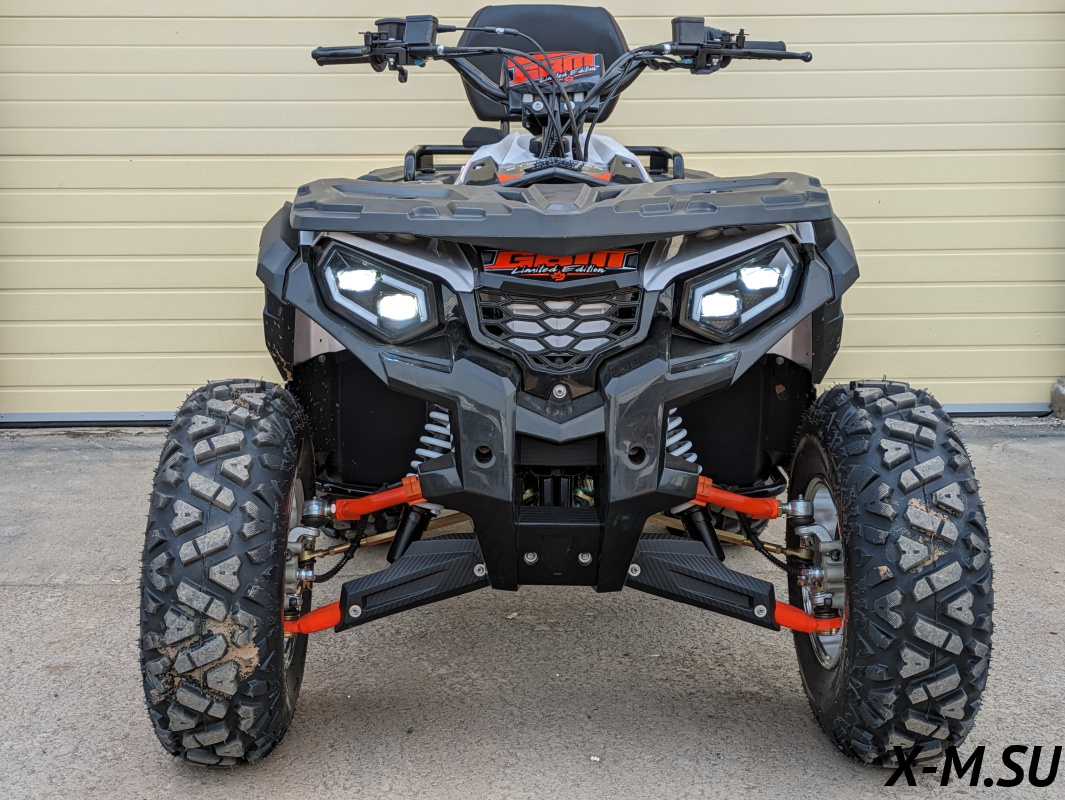Короче, купил себе этот квадрик, доволен как слон. Дизайн дерзкий, свет яркий, все видно ночью. Мотор 320 куб см, собран из комплектующих TIADA, крутит до 12000 оборотов спокойно. Жидкостное охлаждение – это круто, можно гонять по полной. Прямоточная трасса глушителя с Akrapovich – звучит круто, мощно так. Рама из хромолибденовой стали, гарантия 5 лет – надежно. Пластик кузовный сам GBM производит, прочный и качественный. Диски кремниево-алюминиевые, легкие и прочные. Подвеска от ABR – лучшая среди одноклассников, дорожный просвет высокий. Короче, квадрик для тех, кто любит скорость и приключения.