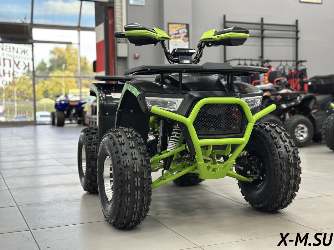 Хороший квадрик, брал для племянника. Выглядит стильно, мотор мощный. Трансмиссия плавная, сцепление хорошее. Сиденье удобное, можно кататься вдвоём. Задние тормоза с ручником — удобно. Из недочётов — немного шумит подвеска, но в целом всё норм.