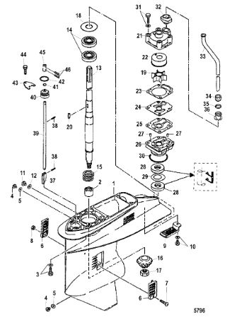 Корпус редуктора, карданный вал, серийный 0N116271 и выше 2-х тактного ПЛМ MERCURY 40 M Серийный номер от 0N056165 и выше